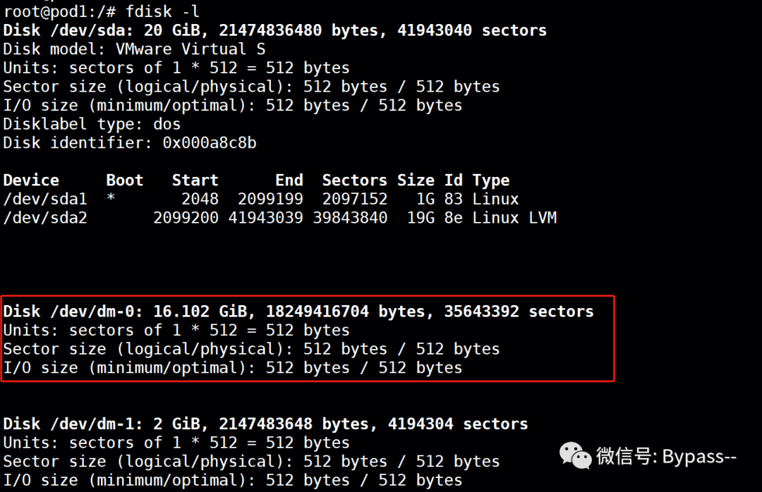 cat /proc/self/status |grep -qi "0000001fffffffff" && echo "Yes" || echo "No"(2)查看当前磁盘分区情况,获取宿主机分区
