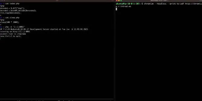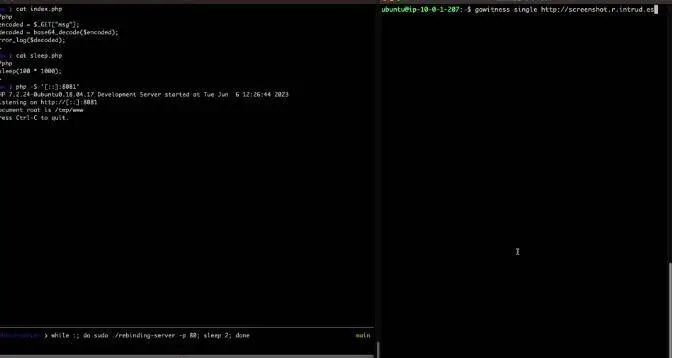 当攻击自动浏览器时,你通常想要在页面中包含一个iFrame,这需要一些时间来加载。这将阻止浏览器认为页面已完全加载,直到iFrame已加载,并确保漏洞利用脚本有足够的时间运行。下面的演示显示,当gowitness被用来从启用了IPv6的EC2上截取恶意网站的截图时,这个漏洞被用来从AWS元数据服务中提取凭证: