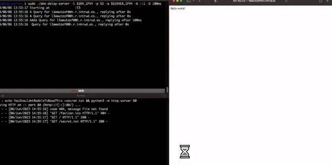 为了实现这一点,我编写了一个小型DNS服务器,可以使用命令行参数延迟DNS响应。在实践中,我发现将A响应延迟100毫秒几乎总是足够的,尽管可以使用200毫秒或更长时间的延迟来使该技术更加可靠。可以在这里https://github.com/intruder-io/dns-delay-server找到这个服务器以及设置它的说明。