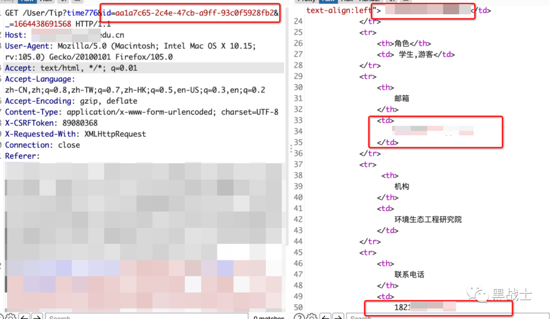 可以通过以下接口遍历用户ID,获取任意用户的姓名 手机号 邮箱等敏感信息
