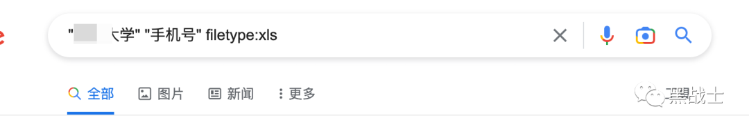 2、谷歌语法搜索 "XX大学" "手机号" filetype:xls 找到一些手机号码