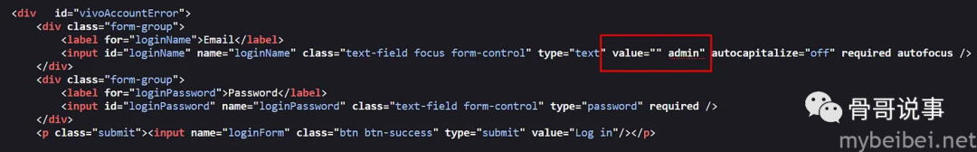 在对目标站点进行测试时,有一个登录功能,像往常一样,白帽小哥尝试使用响应操作、默认凭据和SQL注入来绕过登录,但都未成功,于是小哥开始检查源代码,发现刚刚输入的用户名打印在了Value属性中。
