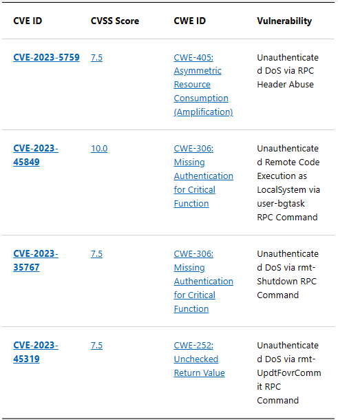 Perforce Helix Core Server是一个较为流行的源代码管理平台,广泛使用于游戏、政府、军事、科技等行业中。近日,微软威胁情报团队发现该平台中存在严重远程代码执行漏洞,并协助其进行了修复。Perforce Helix Core Server同样也是微软游戏开发工作室所使用的一款产品,微软的分析人员在对该产品进行安全审查时发现了四个漏洞,主要涉及拒绝服务(DoS)问题,其中一个最严重的漏洞允许未经身份验证的攻击者以LocalSystem身份进行任意远程代码执行。CVE-2023-5759(CVSS评分7.5):通过RPC标头滥用进行未经身份验证的DoS。CVE-2023-45849(CVSS评分10.0):通过user-bgtask RPC命令作为 LocalSystem执行未经身份验证的远程代码。CVE-2023-35767(CVSS评分7.5):通过rmt-Shutdown RPC命令进行未经身份验证的DoS。CVE-2023-45319(CVSS评分7.5):通过rmt-UpdtFovrCommit RPC命令进行未经身份验证的DoS。LocalSystem是Windows操作系统中的一个高特权账户,用于系统功能,该账户级别可以访问本地资源和系统文件、修改注册表设置等。通过利用CVE-2023-45849,攻击者能够安装后门、访问敏感信息、创建或修改系统设置,并有可能完全控制运行易受攻击版本Perforce服务器的系统。其余三个漏洞允许进行拒绝服务攻击,较不严重,但仍可能导致操作中断,从而导致重大财务损失。微软目前尚未发现这些漏洞被利用的迹象,但仍建议用户尽快升级到2023.1/2513900版本以减轻风险,链接:https://www.perforce.com/downloads/helix-core-p4d除此之外,微软还建议用户采取以下防御策略,以最小化上述及其他可能的漏洞被利用风险:② 使用VPN和IP白名单来限制与Perforce Server的通信。④ 记录对Perforce Server的所有访问。⑤ 为IT管理员和安全团队配置Perforce Server进程崩溃的警报。编辑:左右里