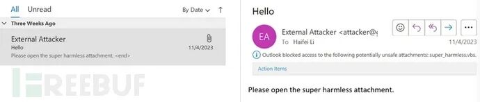 该攻击向量适用于只要受害者在Outlook上阅读电子邮件就会触发安全问题的场景。所以这是一个非常强大的攻击媒介。