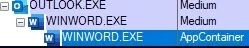 【图4:从外部电子邮件打开文档时,Word在受保护视图模式下运行(进程完整性级别为“AppContainer”)】