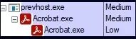 请注意,在后台,PDF附件是在Adobe Acrobat Reader沙盒中处理的(完整性级别为“Low”的“Acrobat.exe”进程之一)。Adobe Acrobat Reader进程由Windows进程“prevhost.exe”启动。如下图所示。