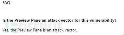 事实上,正如有人指出的那样,这是一个令人困惑的名字。无论如何,当提及Outlook“预览窗格”攻击载体时,我们可以假设只要用户在Outlook上阅读电子邮件,这个漏洞就可能被触发。