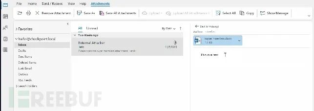 以下是一般的攻击方式:攻击者向受害者发送带有恶意附件的电子邮件,引诱受害者打开该附件。