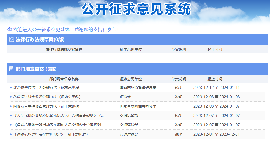 但是直到今天夜间,司法部并没有将这一条意见征集列出。