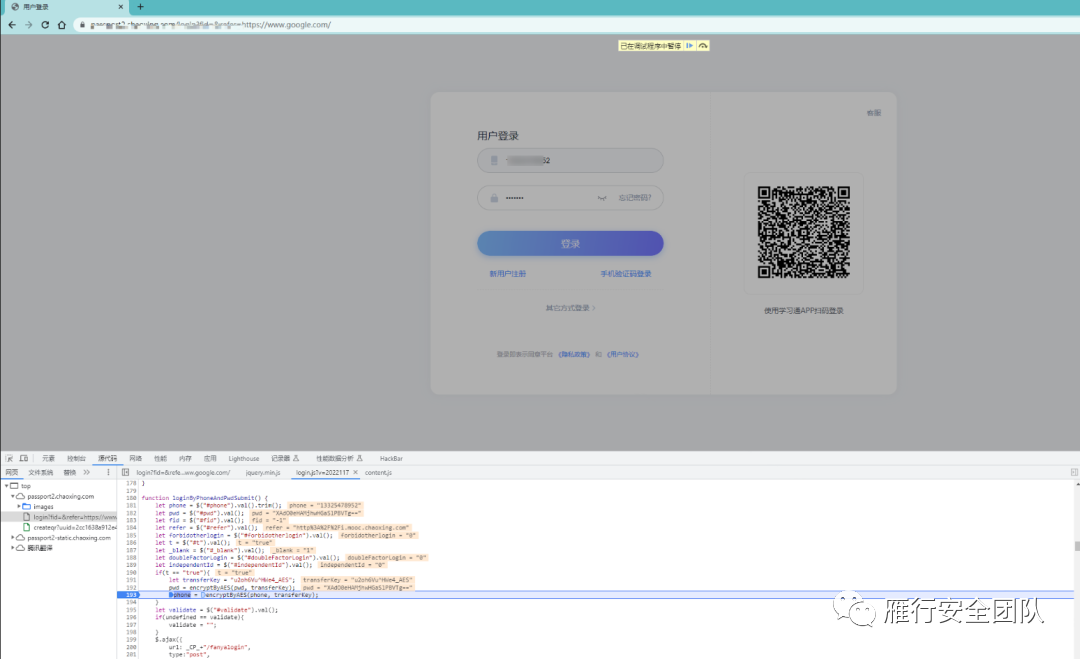 a.原文中给出了寻找加密函数的一个思路。通常我们要找的都是登录相关的数据包加解密。所以我们直接打开控制台的network选项卡