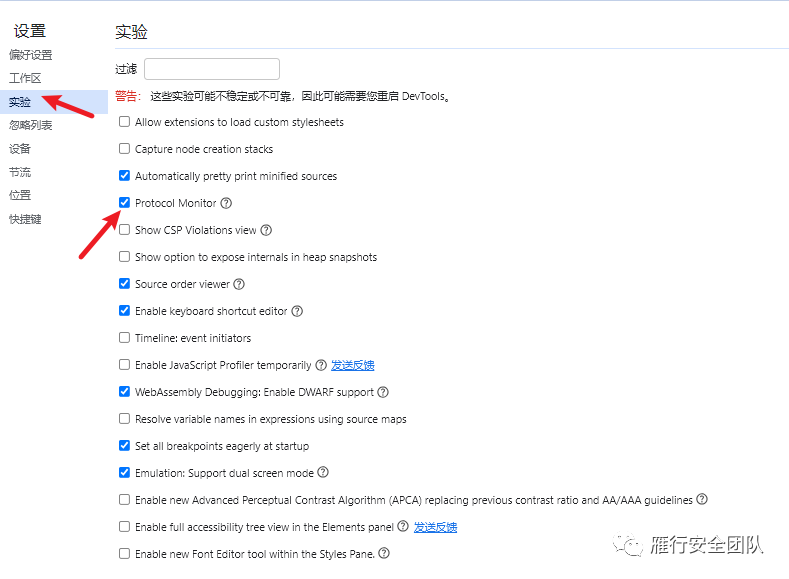 1.首先需要开启 devtools设置中的Protocol Monitor⽤于监测cdp协议的调⽤记录
