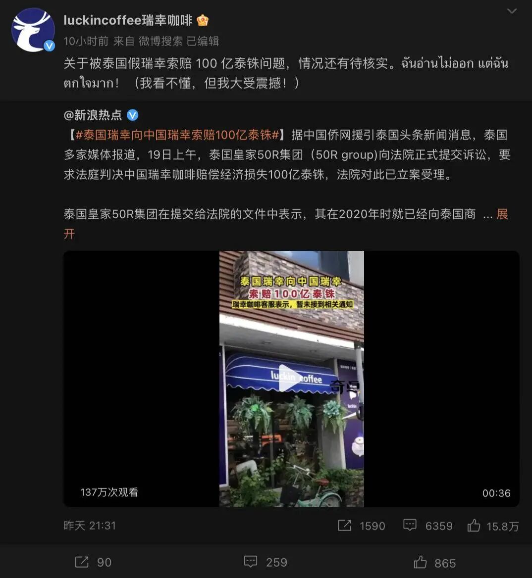 中国瑞幸被泰国瑞幸索赔 20 亿,「泰离谱」了