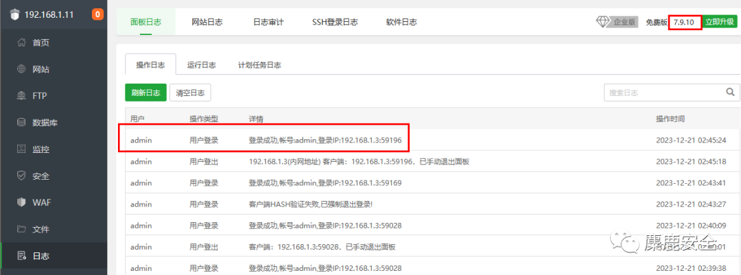 升级宝塔到7.9.6版本,前一篇文章也讲过,故略过这一步