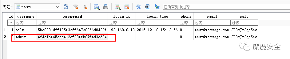 第二行为我们的后门账号,账号为admin,密码明文为123456