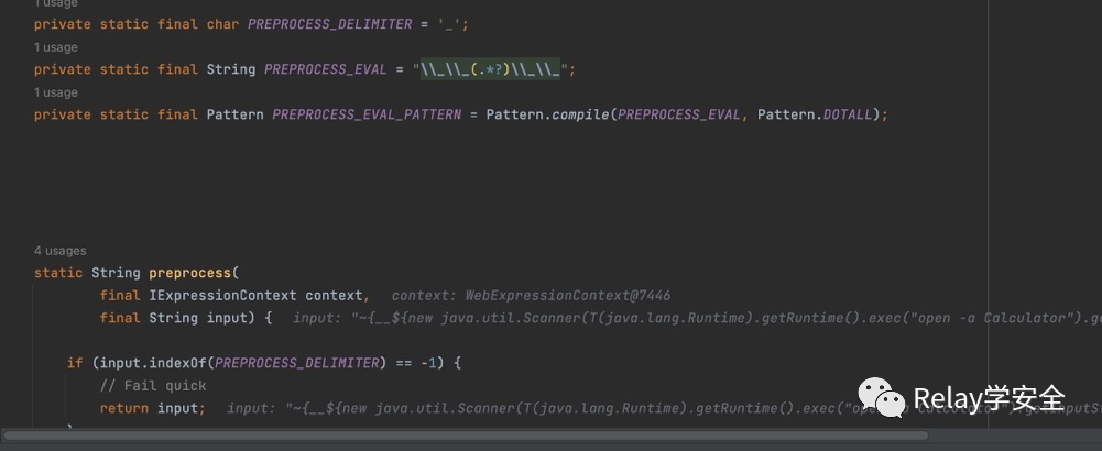 来到parseExpression方法,继续跟进。首先调用preprocess方法,将