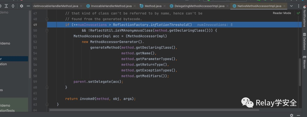 来到invoke方法,继续进入invoke方法,最后通过反射进行调用。