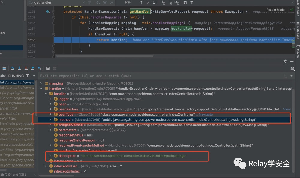 此时的mappedHandler中就存储着Bean工厂 以及对我们方法的映射,