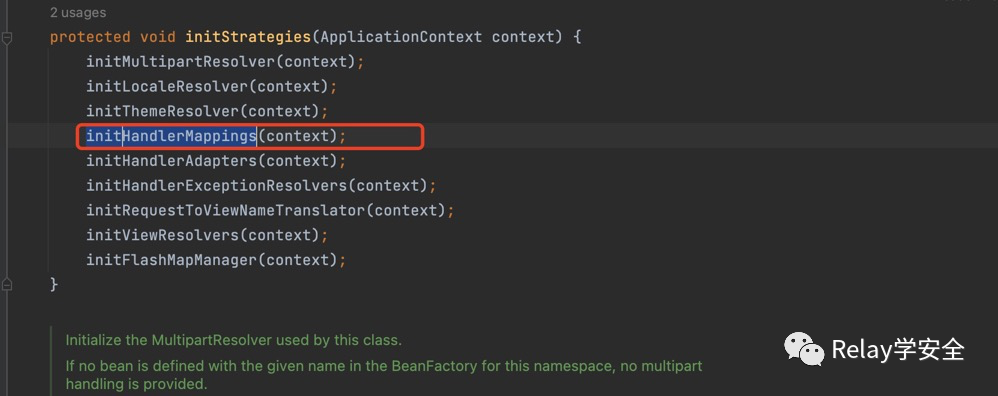 initHandlerMappings方法,这里传进去一个context就是我们的上下文的context,