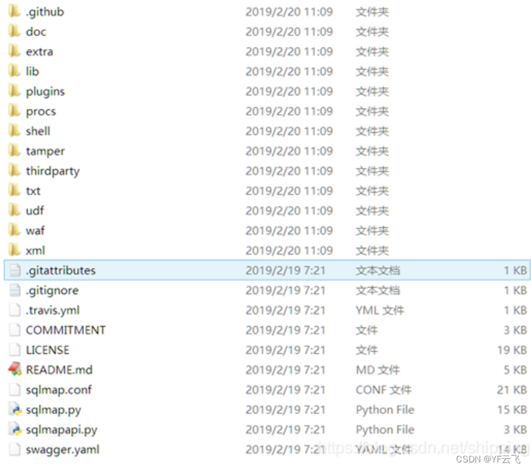 将下载下来的安装包 sqlmapproject-sqlmap-1.3.2-25-gaf890d6.zip 解压到自己想存放的目录并重命名,这里以 D 盘为例,并将解压后的文件重命名为 sqlmap。解压后的目录结构如下图所示: