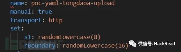 首先是set部分,我的理解就是赋值用的,这里赋值两个随机数做文件名和构造文件上传的Boundary,并且设置http作为发包请求