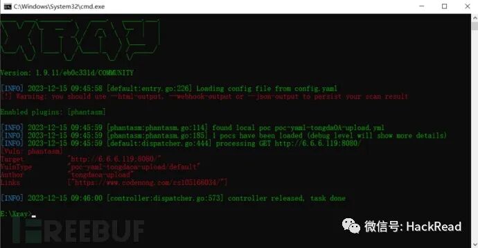 执行命令 xray_windows_amd64.exe ws --poc yaml-xxxx.yml --url http://ip:port