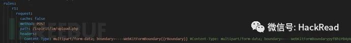 path是漏洞地址,上传一般都是需要POST传参(所以设置method为POST),headers不仅可以设置Contant-type还可以设置cookie,cache暂时设置为false让其不缓存方便调试,代码完善可以达到效果了在设置成true,#用于注释