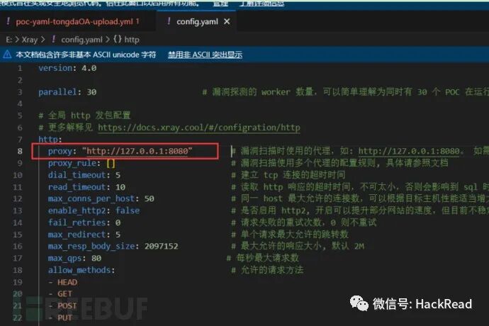 将xray配置文件添加bp监听的IP和端口这样方便调试POC
