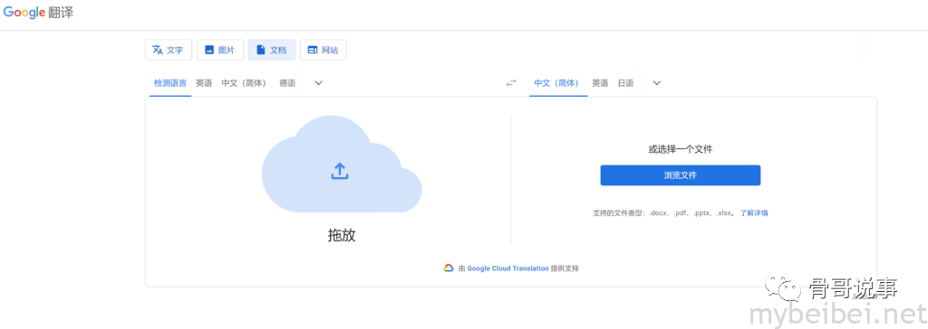 利用谷歌翻译,需要先将PDF转成Word格式,然后点击“Document”按钮,上传Word文档即可完成快速翻译。