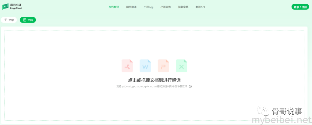 通过点击“文档”,即可直接导入PDF、Word、Excel、PPT等多种格式文档并开始翻译。需要注意的是,该应用有免费次数限制,进阶功能需要付费。