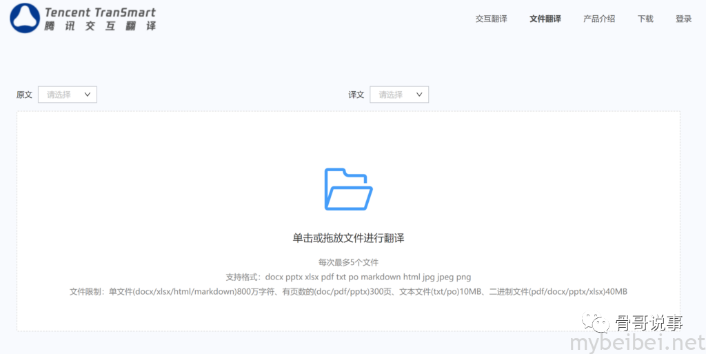 网页版直接点击网页右上角的“文件翻译”,支持导入PDF、Word、Excel、TXT、Markdown以及图片格式,单文件最高支持300页。