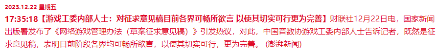周末最大的事情是周五那个《征求意见稿》,我之前也玩一些游戏,试着从用户的角度来聊聊。