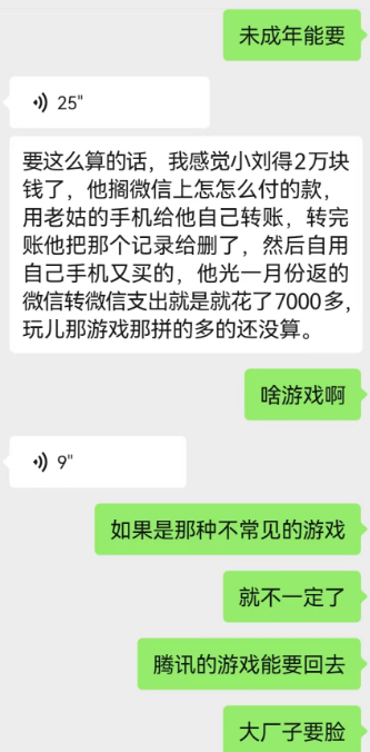 姑姑家小孩是个女孩,十来岁出头也是根“硬骨头,倔的狠”,最终承认的充值金额是2万多,应该不是最终的数,因为有些凭证找不回来无法对证了。