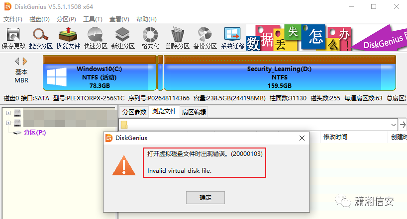 打开虚拟磁盘文件时出现错误。(20000103)Invalid virtual disk file