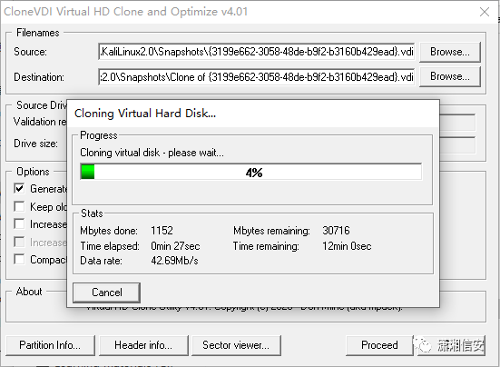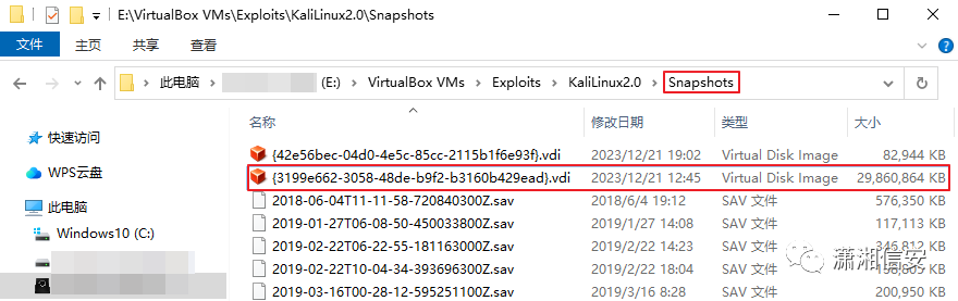 KaliLinux2.0.vdi文件可以打开是因为它是在新建这台虚拟机时创建的一个基础磁盘文件,但如果打开的是我们在后边创建的快照.vdi磁盘文件时就会出现下图报错。 我也试了下重新生成一个快照,然后再打开之前的快照VDI磁盘文件,但还是不行,依然出现下图报错。