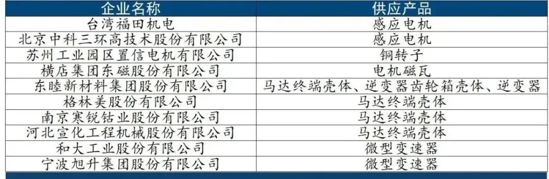 国内共有10家供应商为特斯拉电驱电控系统供应相关材料及组件。