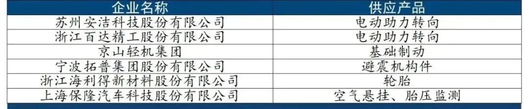 国内共有6家供应商为特斯拉底盘供应相关材料及组件。