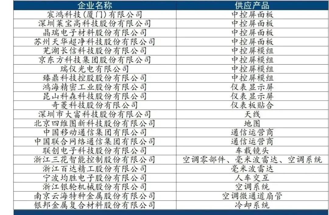 座舱系统国内供应商