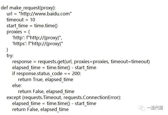 通过计算单个代理IP访问百度网站,直到获取响应所耗费的时间来衡量响应速度,耗时越短,响应速度越快。