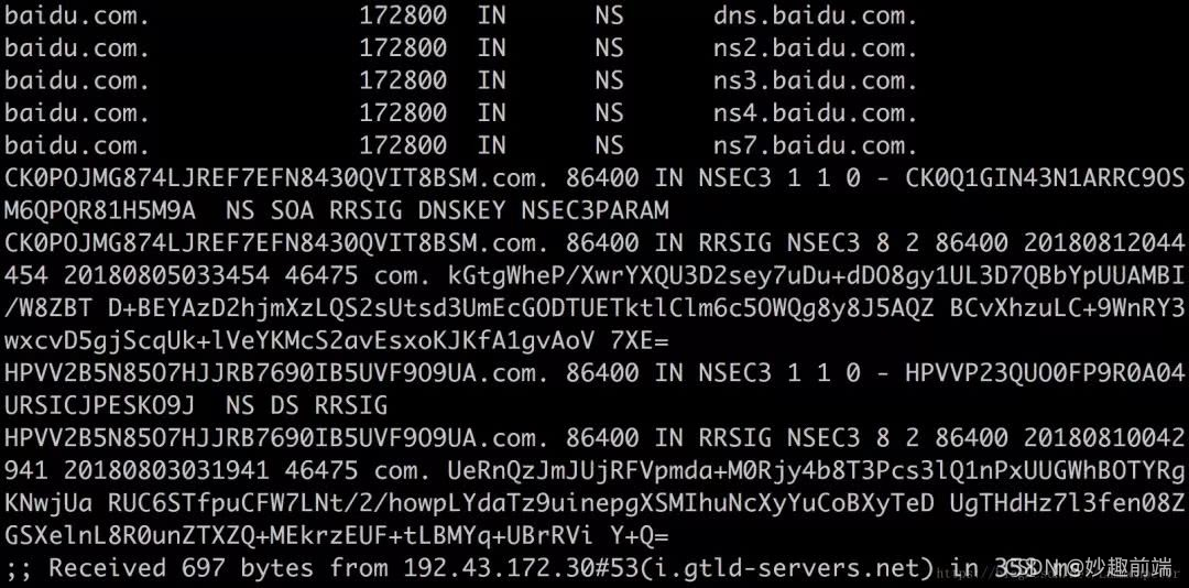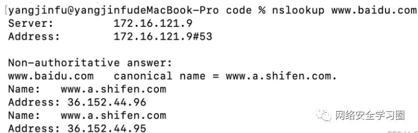 上图中表示解析结果来自非权威服务器,也就是说这个结果来自缓存,并没有完全经历全部的解析过程,从某个缓存中读取的结果,这个结果存在一定的隐患,比如域名对应的地址已经更变。
