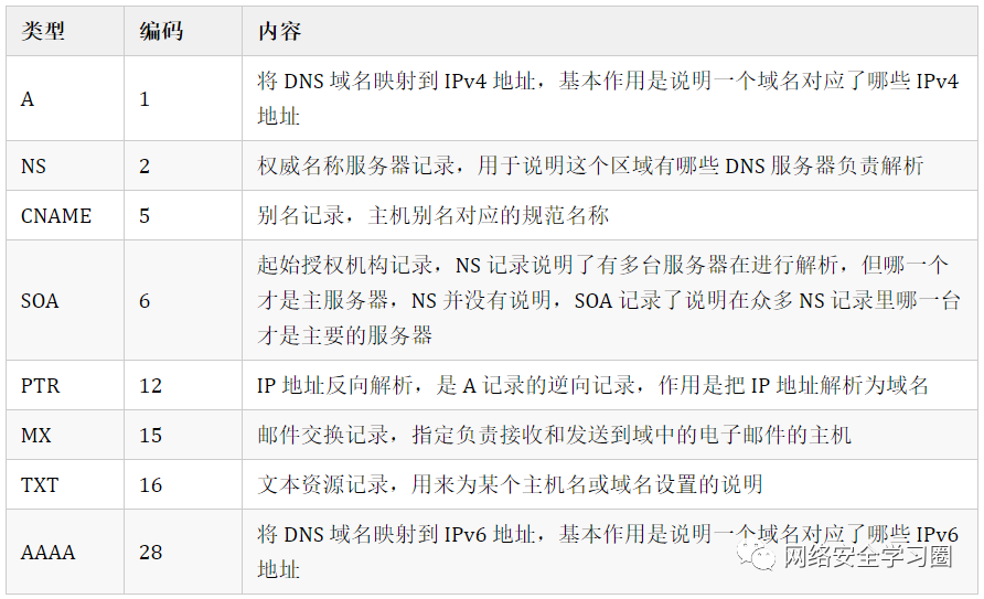 在正式开始分析解析过程之前,先来介绍几个基本的域名解析方式的概念。域名解析记录主要分为A记录、MX记录、CNAME记录、NS记录以及TXT记录。DNS 资源记录