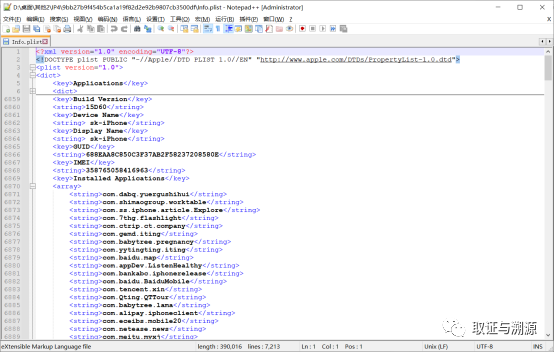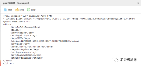 接下来还剩根目录的 plist 文件没有介绍了,iTunes 备份包解压后一共会出现 3 个plist 文件,分别为:Info、Manifest、Status,那么依次来简单介绍一下。