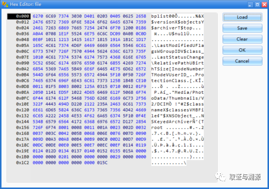 这些文件都是00开头的,其实大家也能猜到了,苹果只是做了一个分类。这些文件并不是通过记事本或者notepad工具就能查看的,将文件拖入 Winhex 来猜一下,下图的文件是什么?