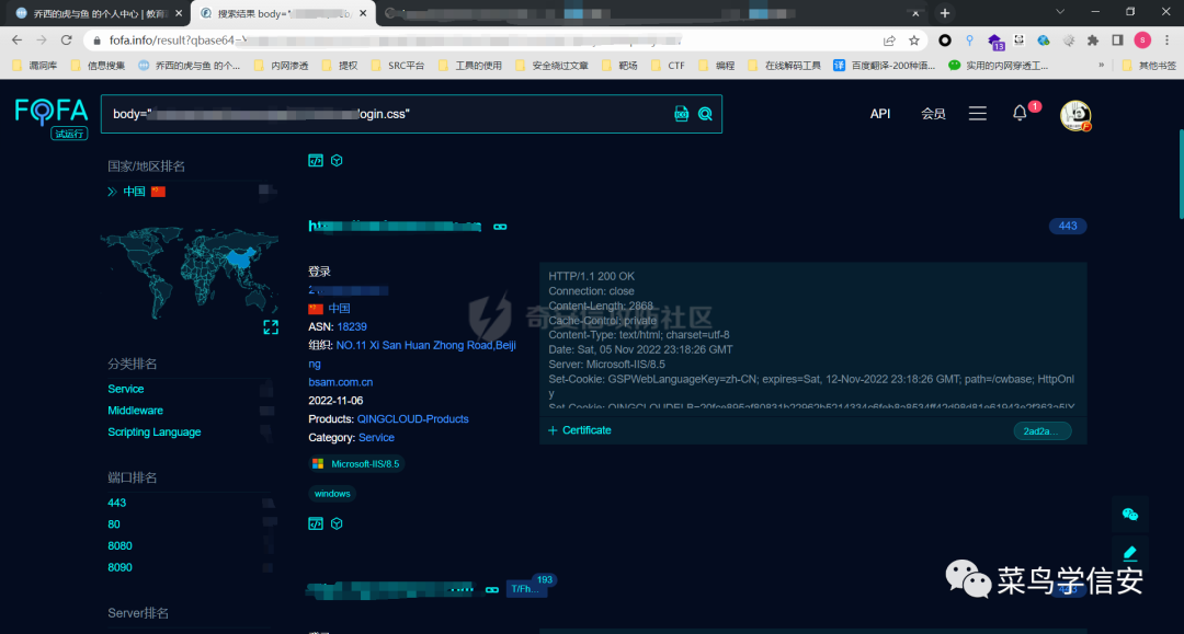 使用奇安信的资产收集平台直接找到用户服务系统。