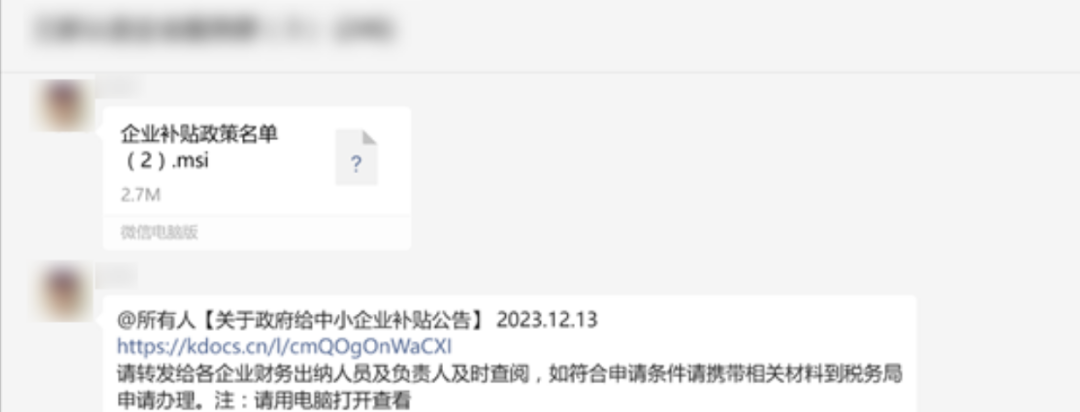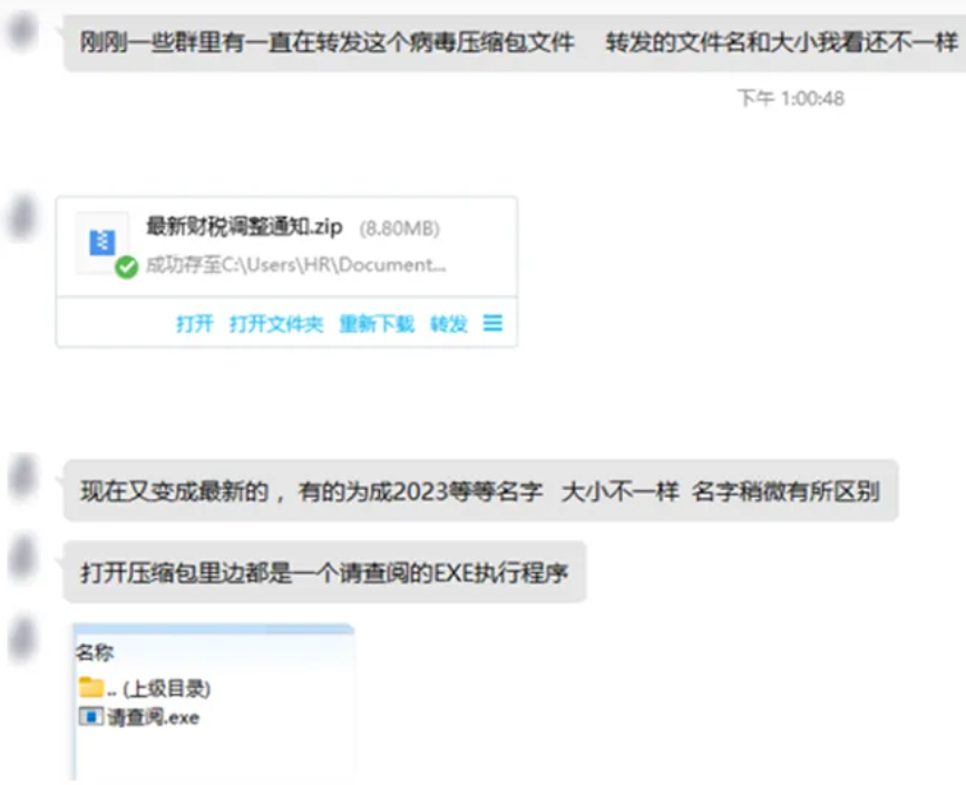 该类病毒通常以企事业的管理人员、财务人员、销售人员等为主要目标,伪装成带有税-务、汇总、汇票、收款、稽查、通告、公示等关键词的文件,诱骗用户点击下载,从而获得计算机控制权限。