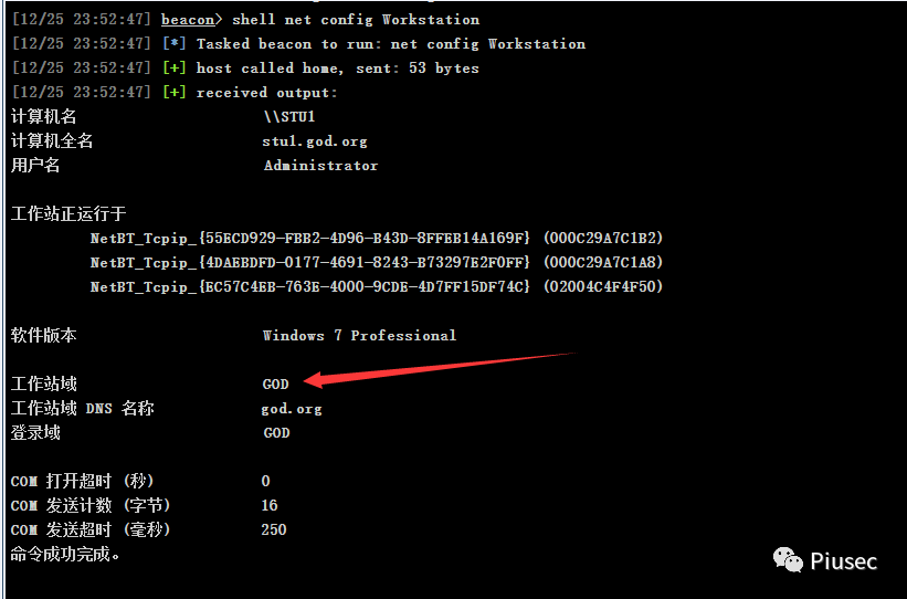 net config Workstation # 查看计算机名、全名、用户名、系统版本、工作站、域、登录域