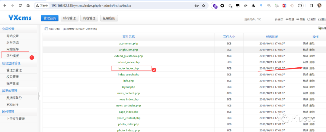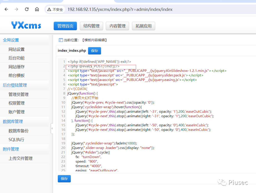 通过弱口令登录成功,在前台模板,编辑首页文件
