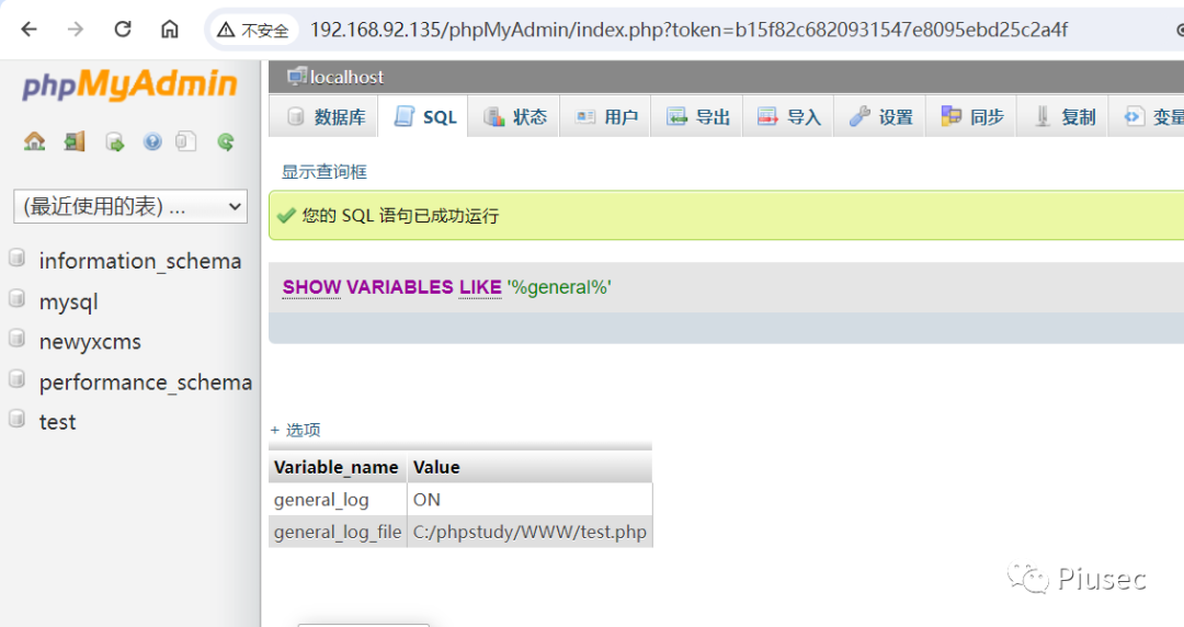 还可以使用日志写入木马,使用 show variables like '%general%';命令查看日志全局变量