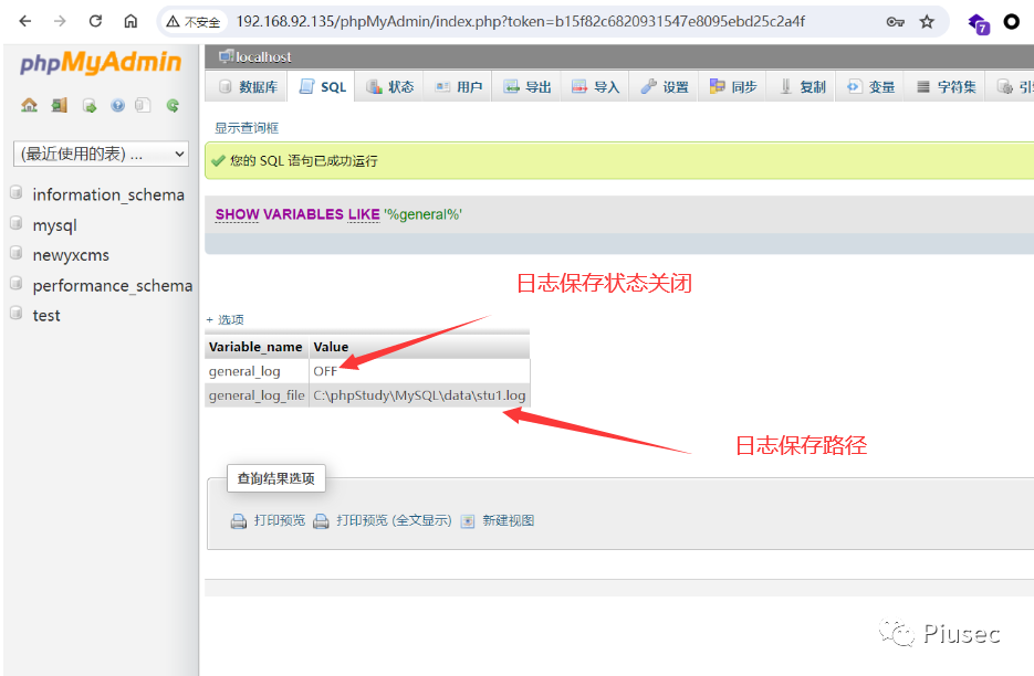 使用 set global general_log = "ON";命令开启日志保存,使用set global general_log_file = "C:/phpstudy/WWW/log.php"; 命令更改日志保存路径